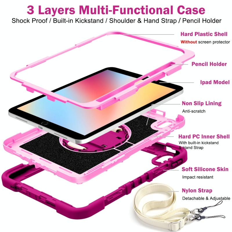 For iPad 2025 / 2022 360 Degree Rotation Shockproof Silicone + PC Tablet Case(Rose Red+Pink)