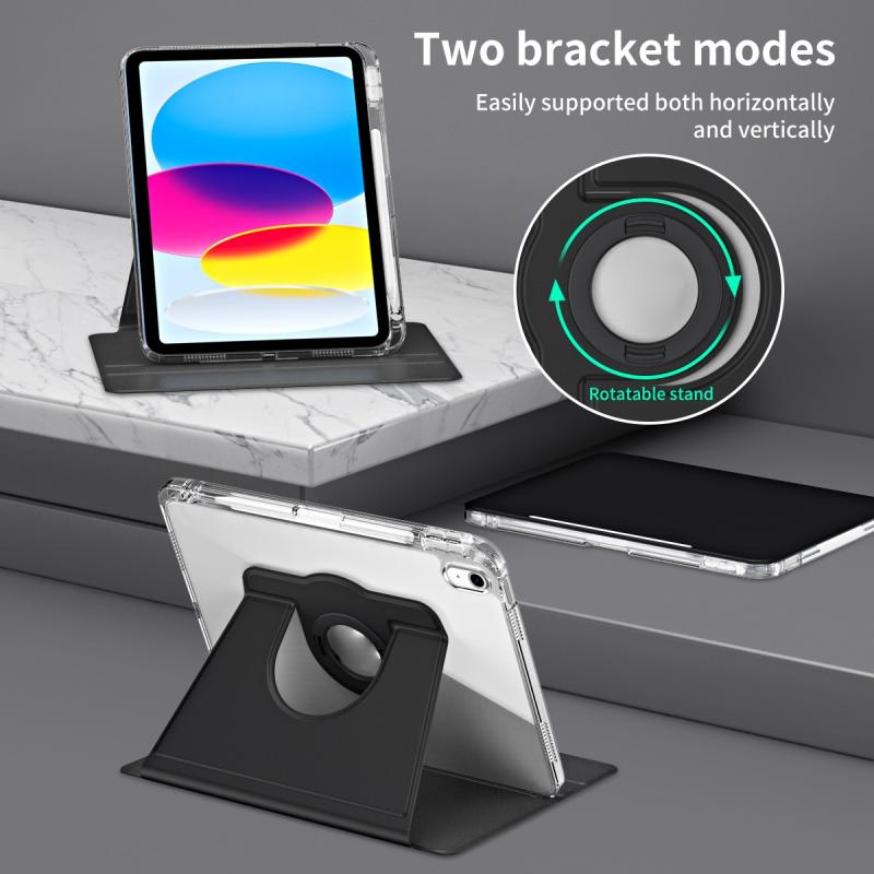 For iPad 2025 / 2022 360 Rotation Detachable Clear Acrylic Leather Tablet Case(Black)