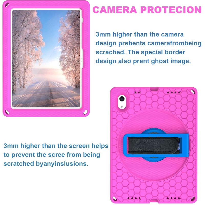 For iPad 2025 / 2022 360 Rotation Stand EVA Hard PC Tablet Case with Strap(Rose+Blue)