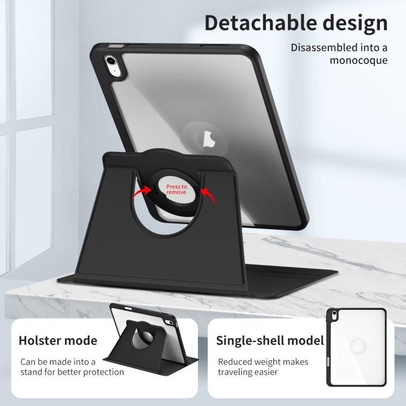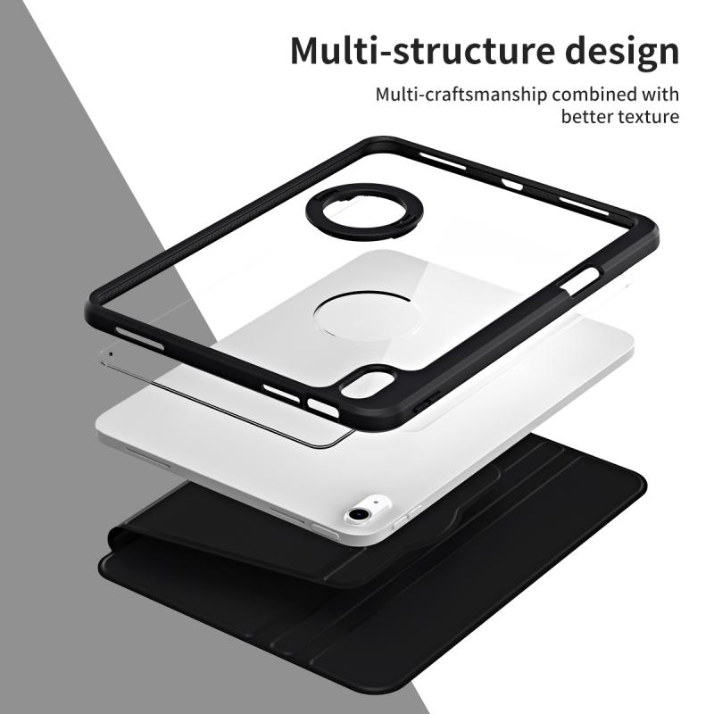 For iPad 2025 / 2022 Acrylic 360 Rotation Detachable Leather Tablet Case(Black)