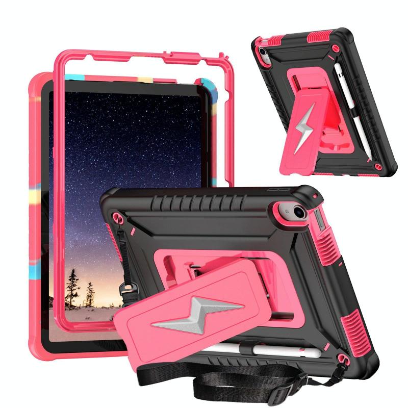 For iPad 2025 / 2022 Armor Bolt Shape Holder Silicone Hybrid PC Tablet Case(Black Rose Red)