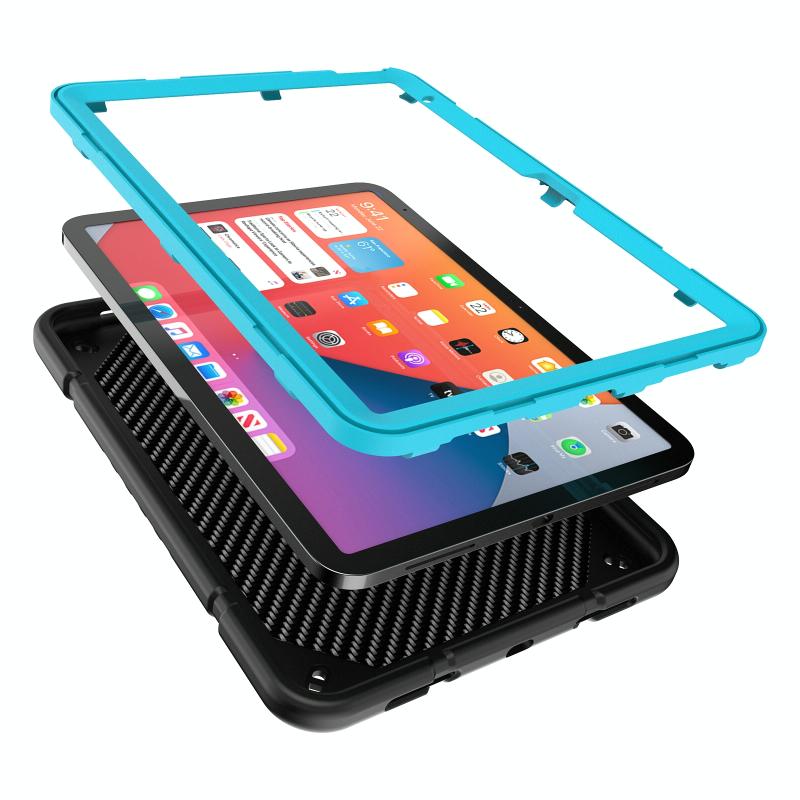 For iPad 2025 / 2022 Armor Holder Silicone Hybrid PC Tablet Case(Black Blue)