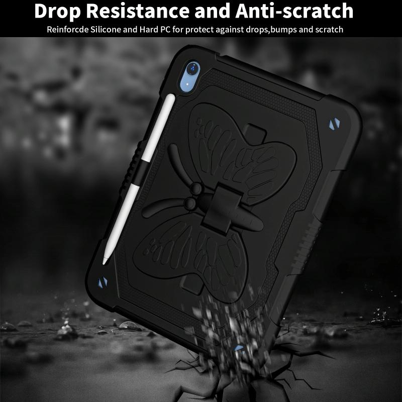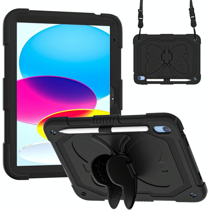 For iPad 2025 / 2022 Butterfly Kickstand Heavy Duty Hard Rugged Tablet Case(Black)