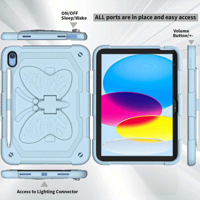 For iPad 2025 / 2022 Butterfly Kickstand Heavy Duty Hard Rugged Tablet Case(Ice Blue)