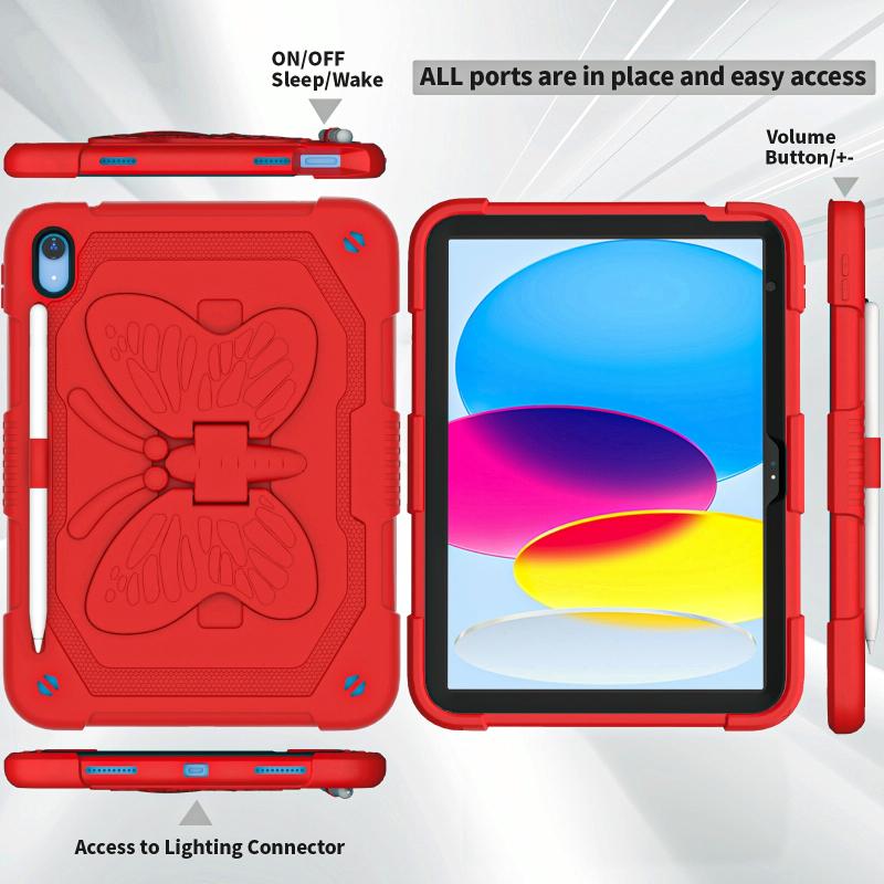 For iPad 2025 / 2022 Butterfly Kickstand Heavy Duty Hard Rugged Tablet Case(Red)