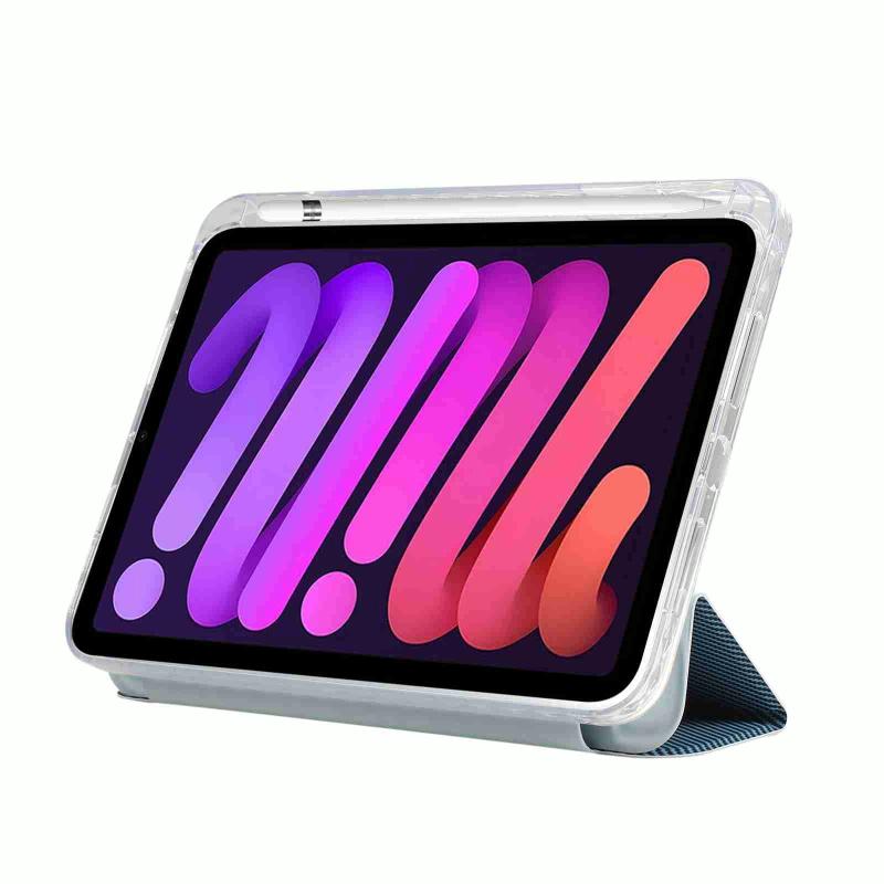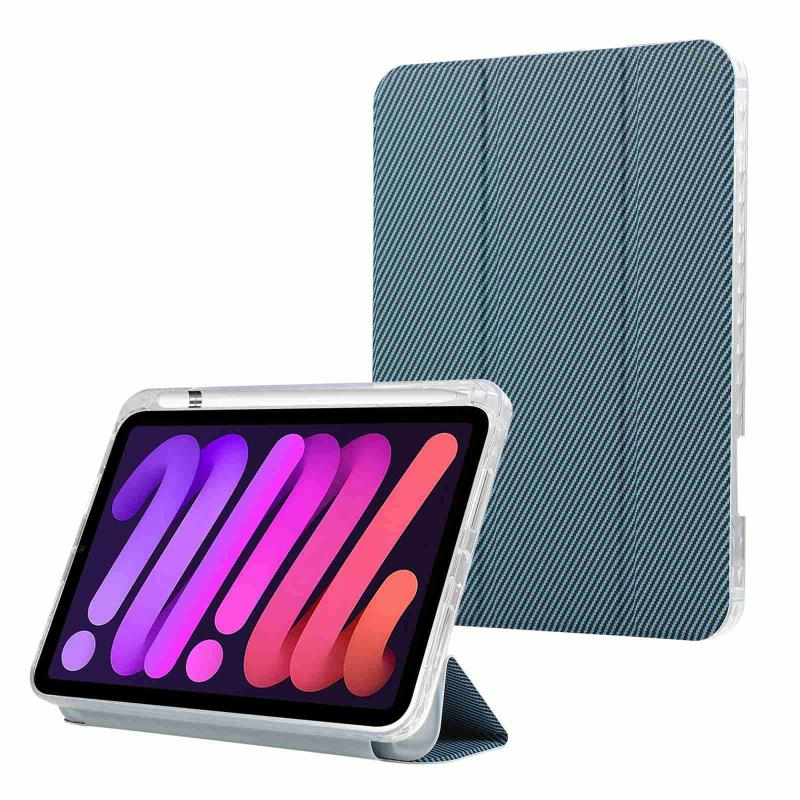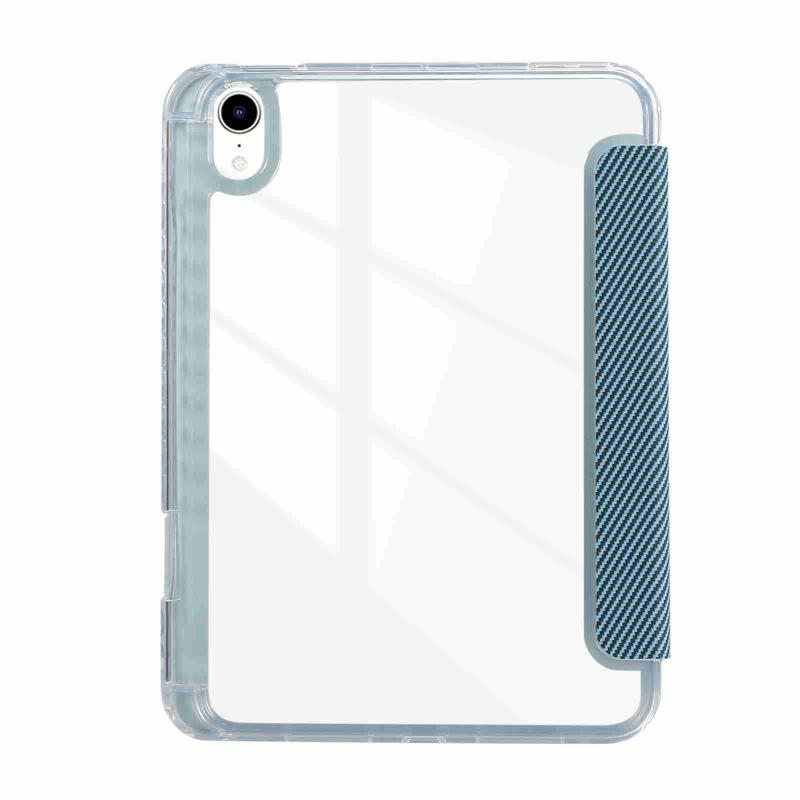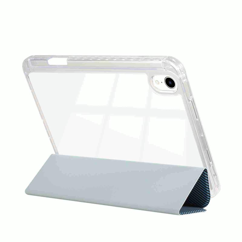 For iPad 2025 / 2022 Carbon Fiber Clear Acrylic 3-Fold Leather Tablet Case(Blue)