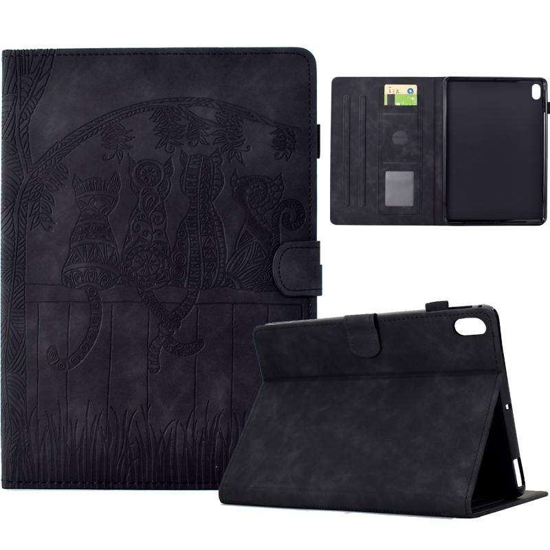 For iPad 2025 / 2022 Cats Embossed Leather Smart Tablet Case(Black)