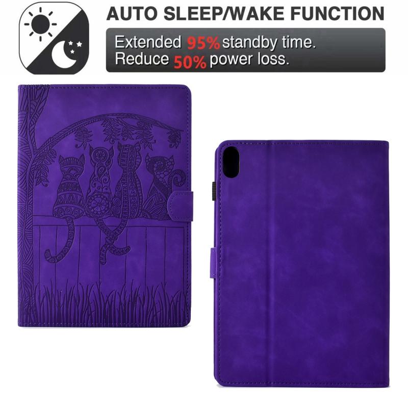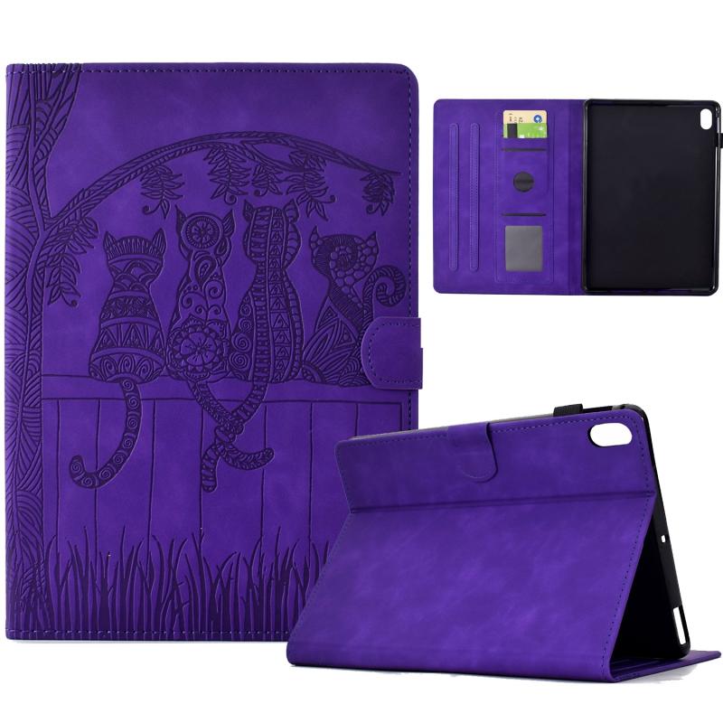 For iPad 2025 / 2022 Cats Embossed Leather Smart Tablet Case(Purple)