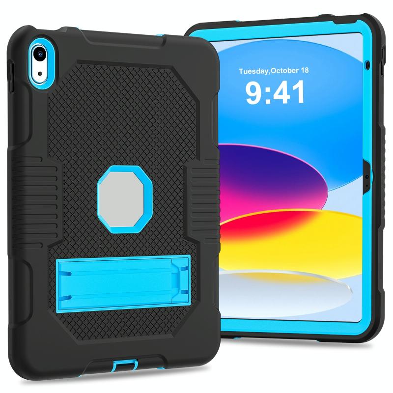 For iPad 2025 / 2022 Contrast Color Robot Silicone + PC Tablet Cas(Black+Blue)