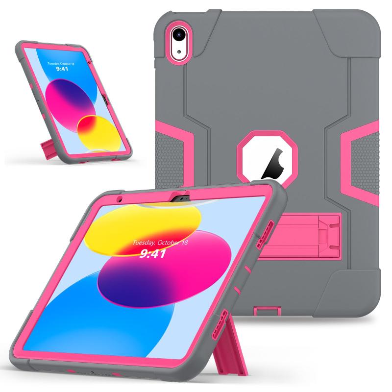 For iPad 2025 / 2022 Contrast Color Silicone + PC Tablet Case with Holder(Grey Rose Red)