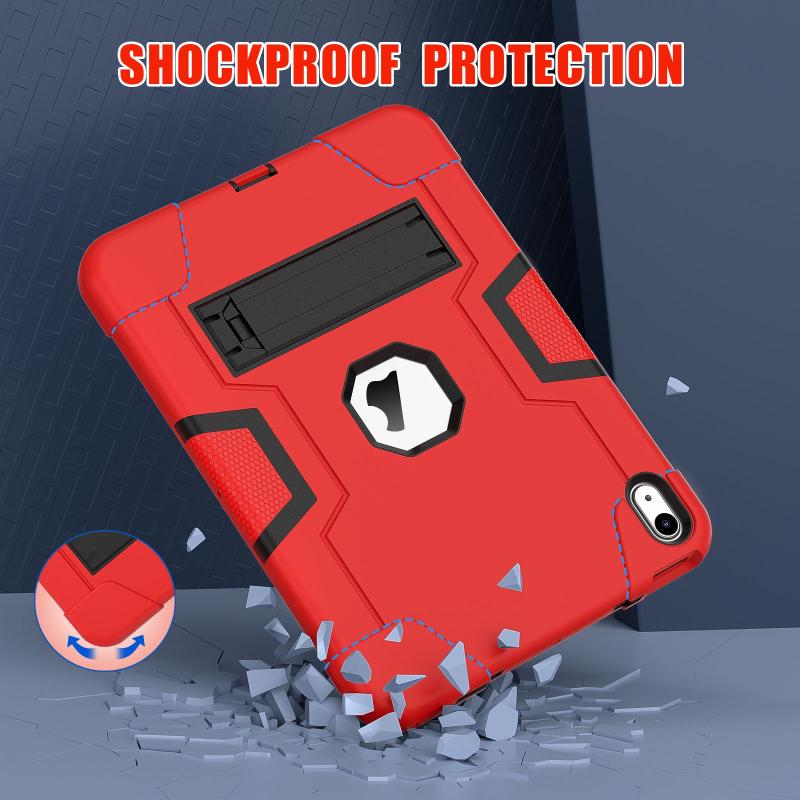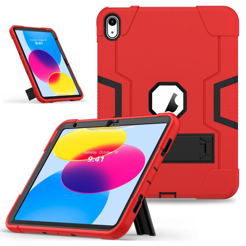 For iPad 2025 / 2022 Contrast Color Silicone + PC Tablet Case with Holder(Red Black)