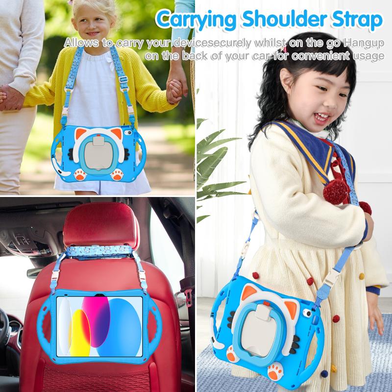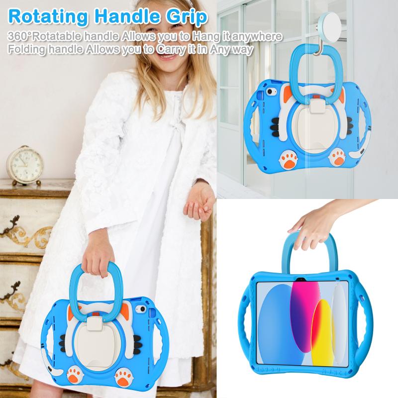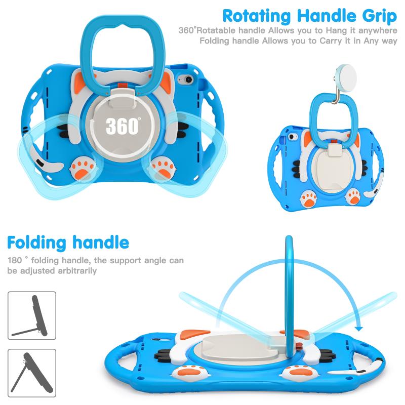 For iPad 2025 / 2022 Cute Cat King Kids Shockproof Silicone Tablet Case(Light Blue)
