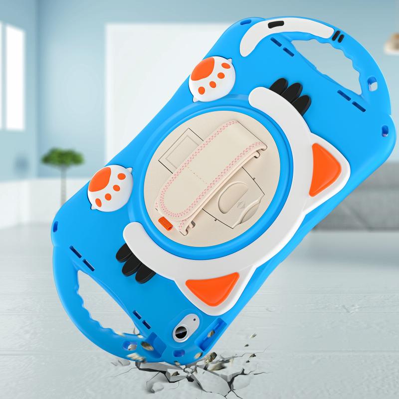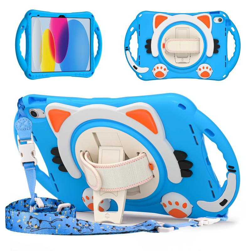 For iPad 2025 / 2022 Cute Cat King Kids Shockproof Silicone Tablet Case(Light Blue)