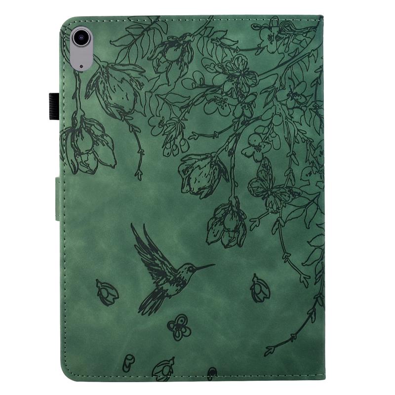For iPad 2025 / 2022 Flowers and Bird Embossed Smart Leather Tablet Case(Green)