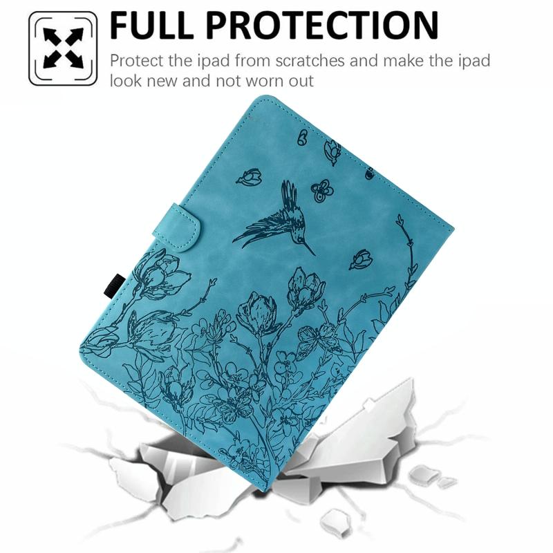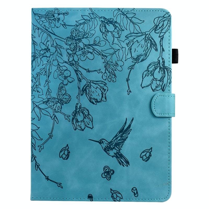 For iPad 2025 / 2022 Flowers and Bird Embossed Smart Leather Tablet Case(Light Blue)
