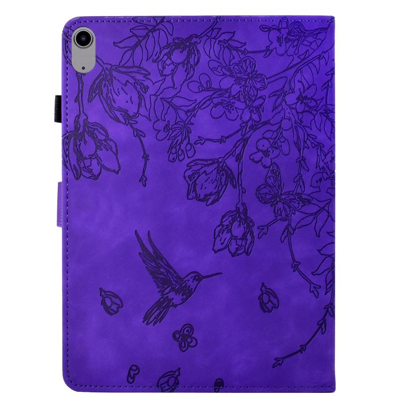 For iPad 2025 / 2022 Flowers and Bird Embossed Smart Leather Tablet Case(Purple)