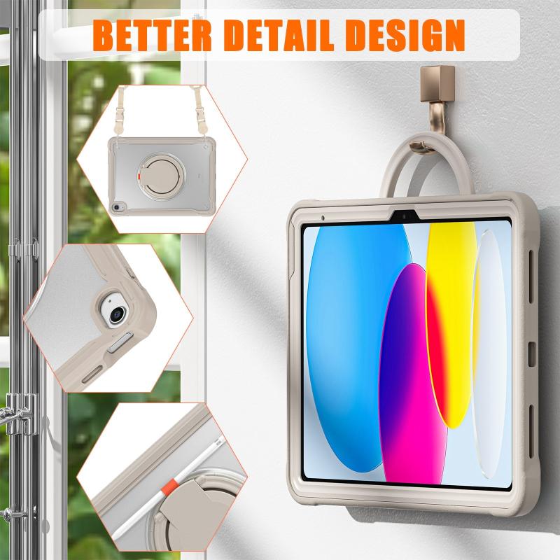 3. Adjustable Shoulder Strap: Adjustable shoulder grip can be slanted and release your hands completely. This function is perfect for traveling, restaurant ordering, home product introduction, engineer outdoor operation, teacher, etc. Also, the strap allows you to hang up your tablet behind car seat for entertainment for kids.