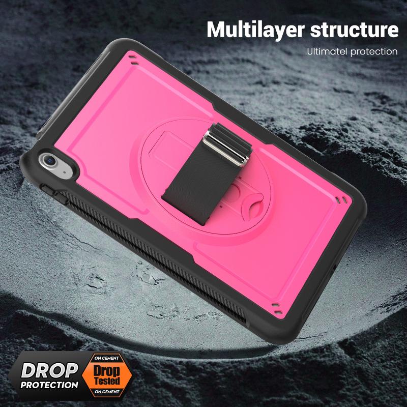 For iPad 2025 / 2022 Honeycomb Hand Grip Turntable Stand Tablet Case(Rose Red)