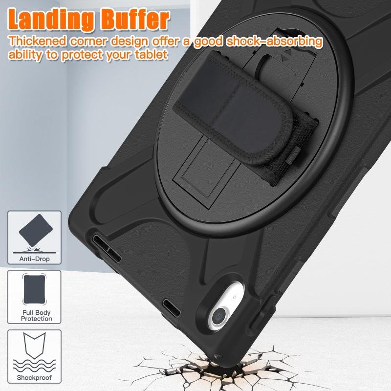 For iPad 2025 / 2022 Rotatable Kickstand Grip Heavy Duty Hard Rugged Tablet Case(Black)