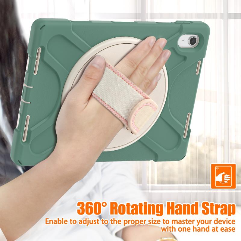 For iPad 2025 / 2022 Rotatable Kickstand Grip Heavy Duty Hard Rugged Tablet Case(Emerald Green)