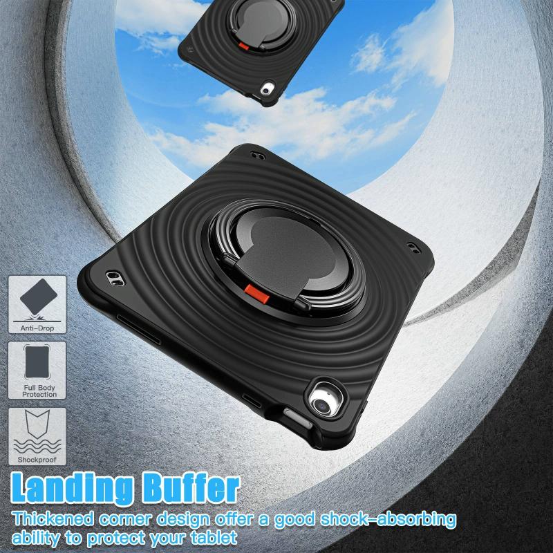 For iPad 2025 / 2022 Rotation Handle Holder Silicone Hybrid PC Tablet Case(Black)