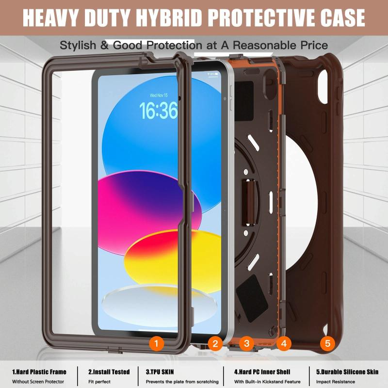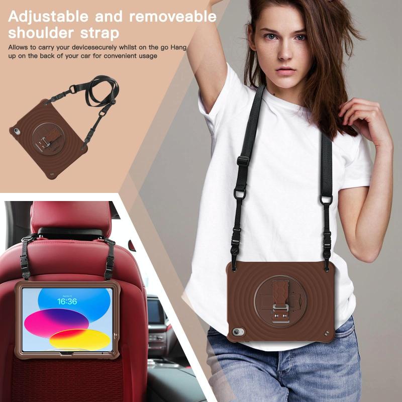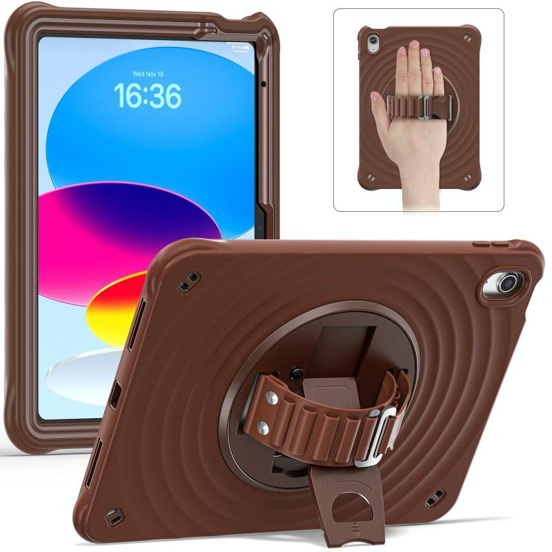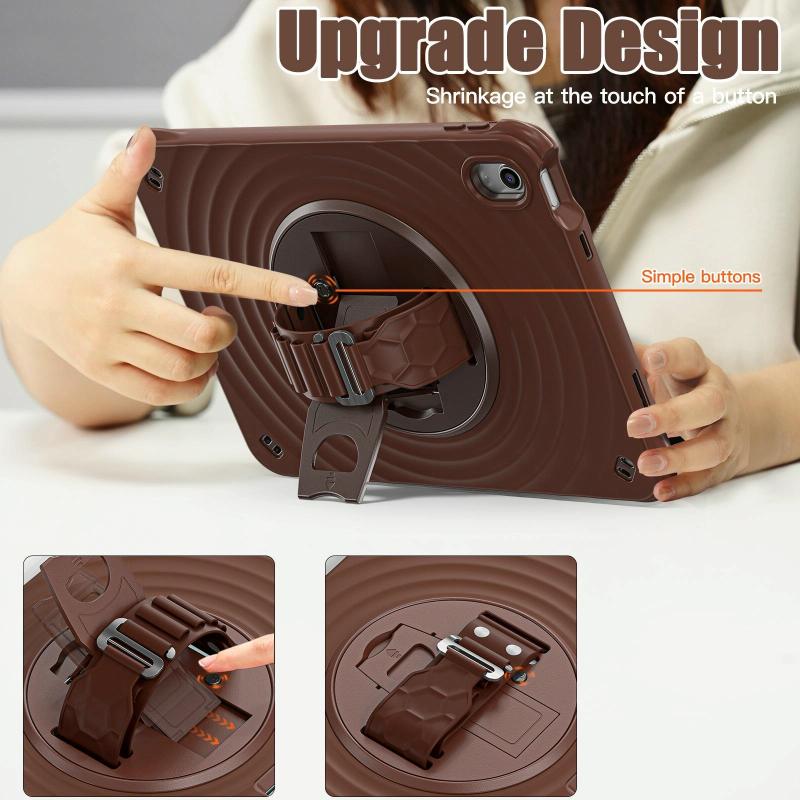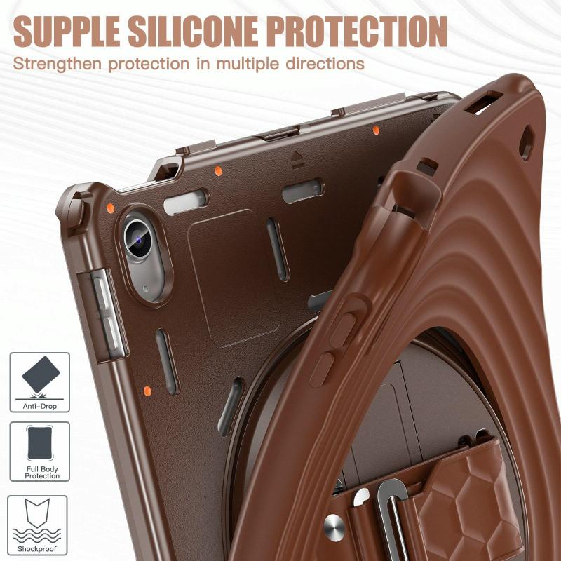 For iPad 2025 / 2022 Rotation Holder Silicone Hybrid PC Tablet Case(Chocolate)