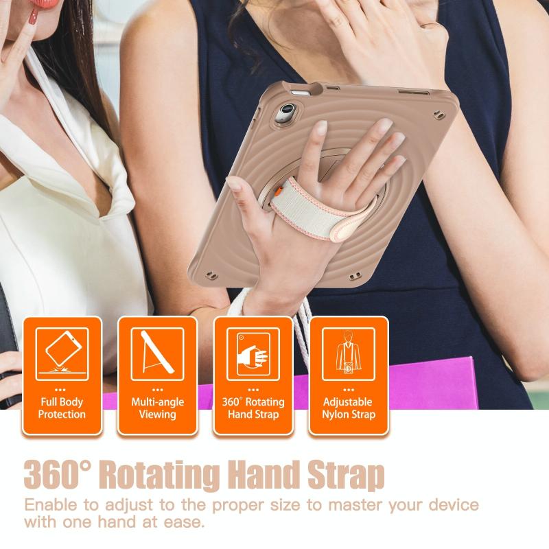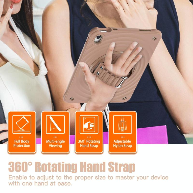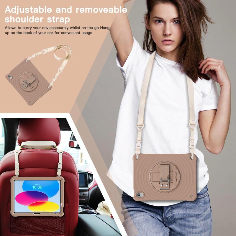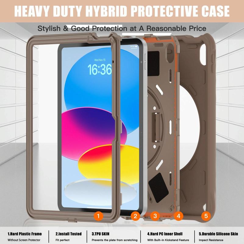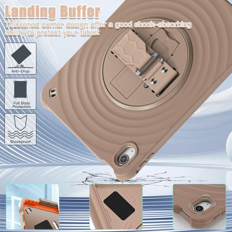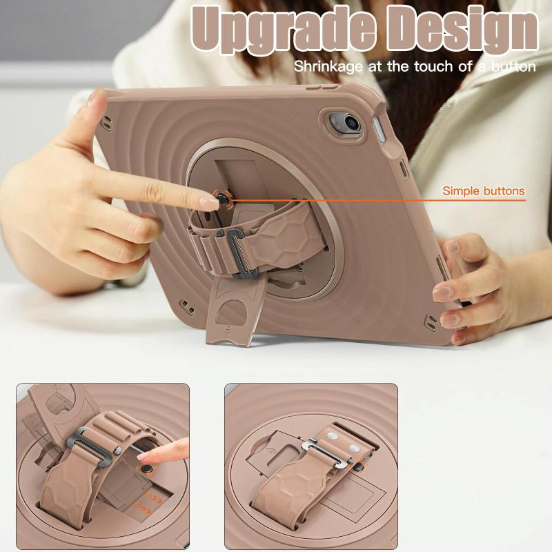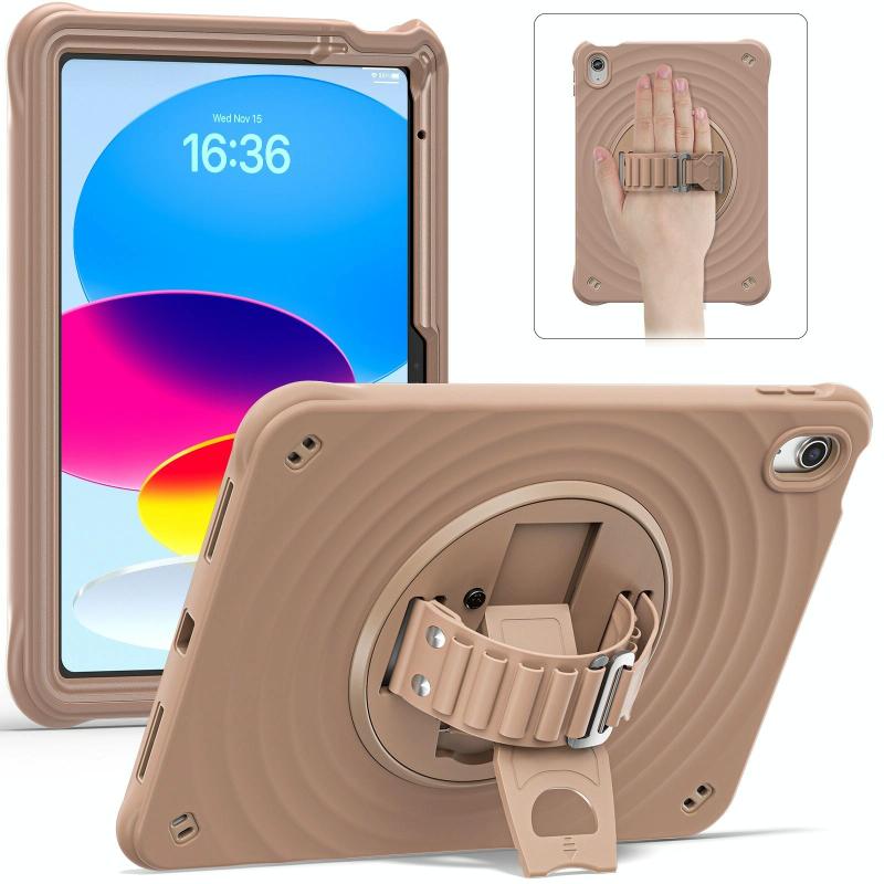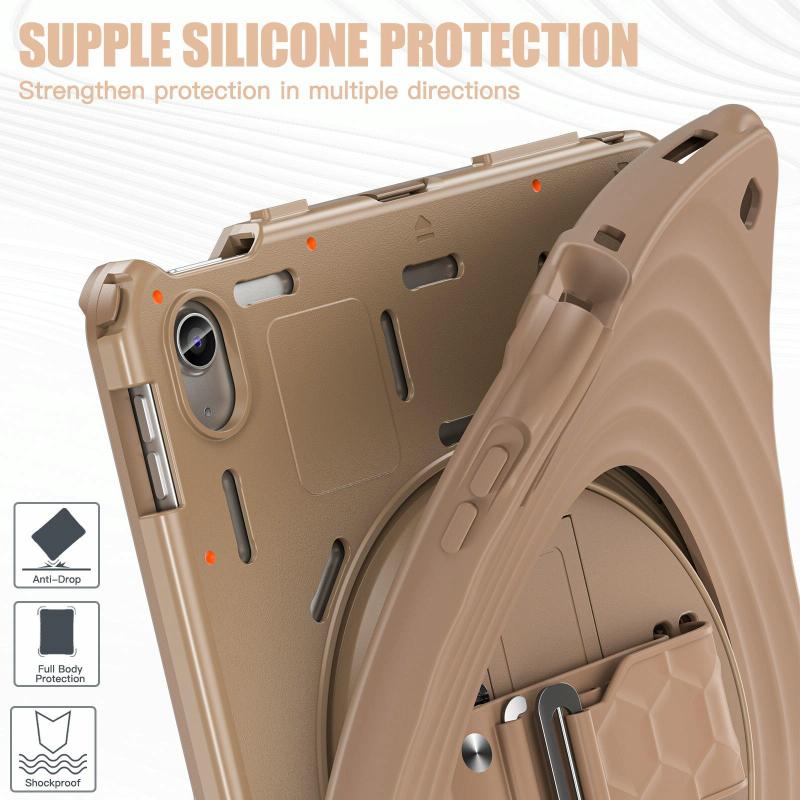 For iPad 2025 / 2022 Rotation Holder Silicone Hybrid PC Tablet Case(Light Coffee)