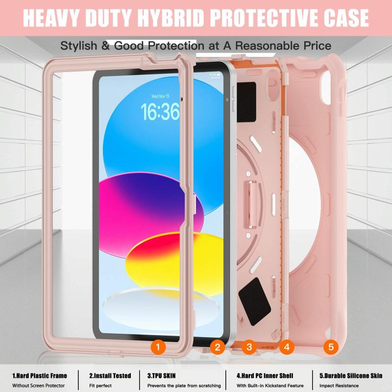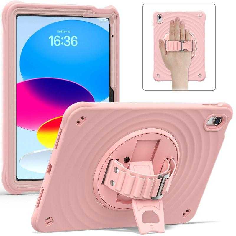 For iPad 2025 / 2022 Rotation Holder Silicone Hybrid PC Tablet Case(Pink)