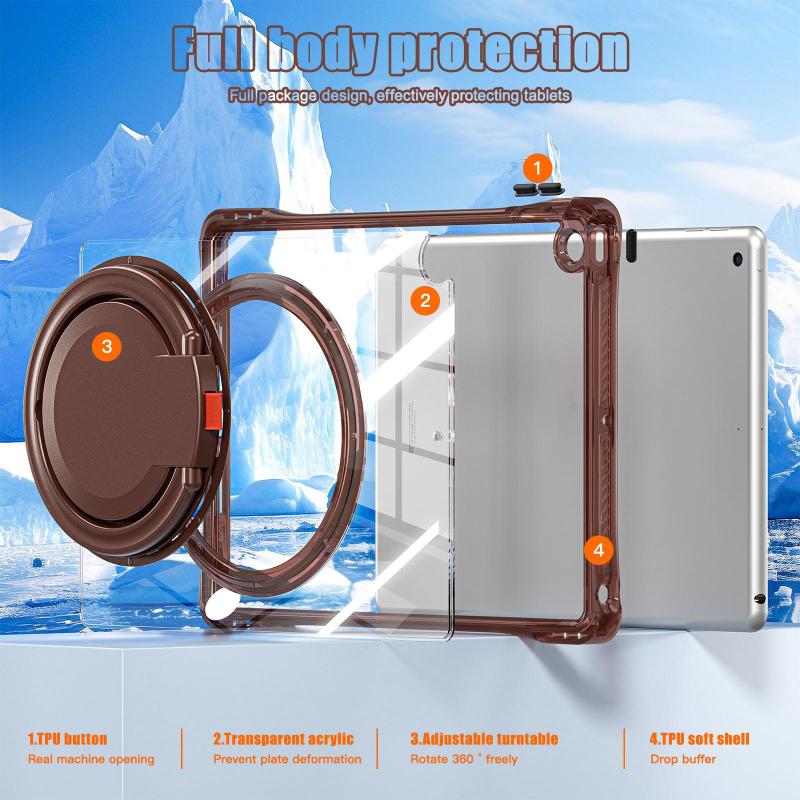 For iPad 2025 / 2022 Rotation Ring Handle TPU Hybrid Clear PC Tablet Case(Chocolate)