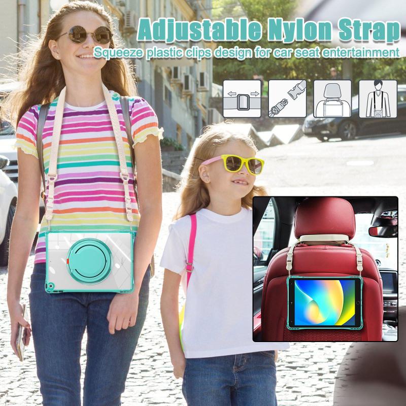 For iPad 2025 / 2022 Rotation Ring Handle TPU Hybrid Clear PC Tablet Case(Light Green)