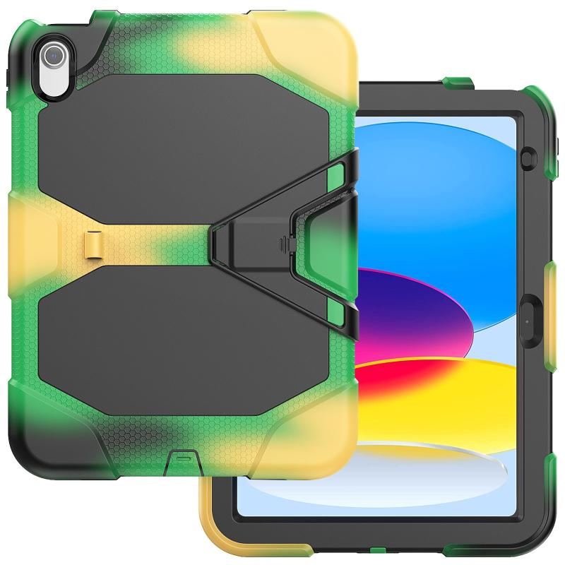 For iPad 2025 / 2022 Rugged Silicone Hard PC Tablet Case with Holder(Camouflage)
