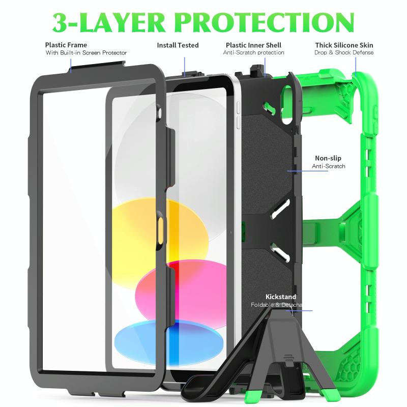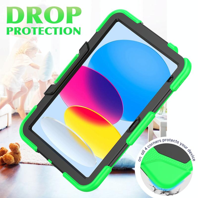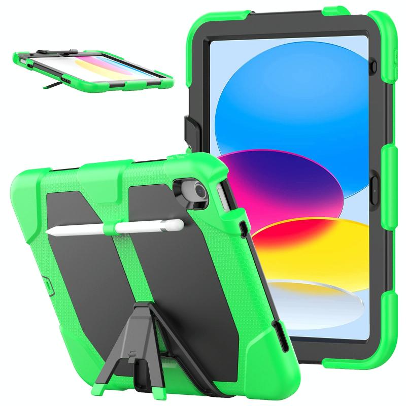 For iPad 2025 / 2022 Rugged Silicone Hard PC Tablet Case with Holder(Green)