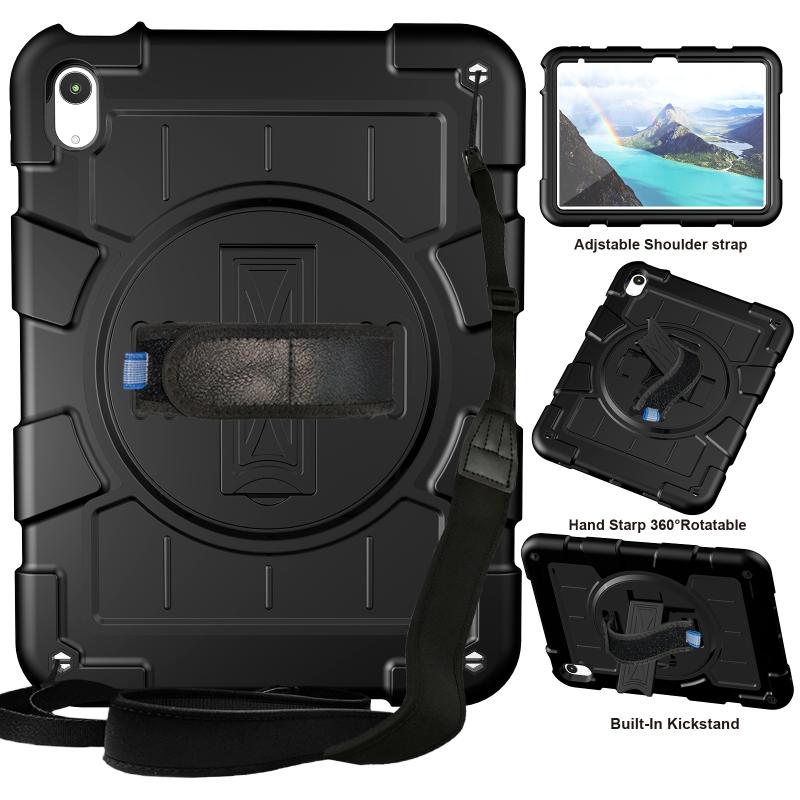For iPad 2025 / 2022 Silicone Hybrid PC Shockproof Tablet Case with Shoulder Strap(Black)