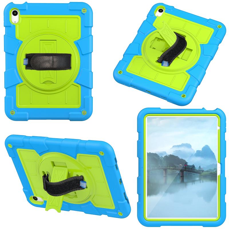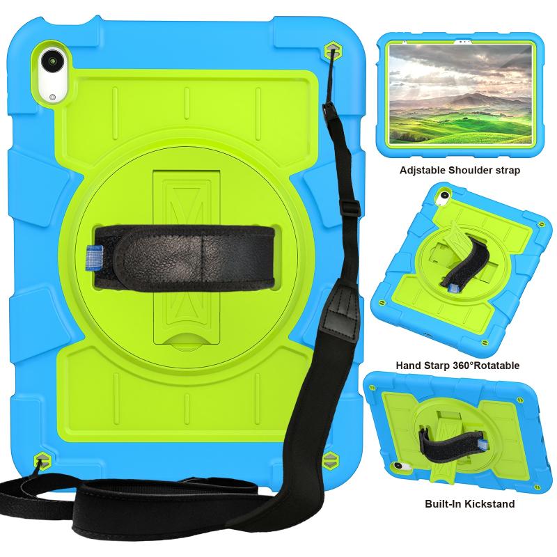 For iPad 2025 / 2022 Silicone Hybrid PC Shockproof Tablet Case with Shoulder Strap(Bluish-Green)