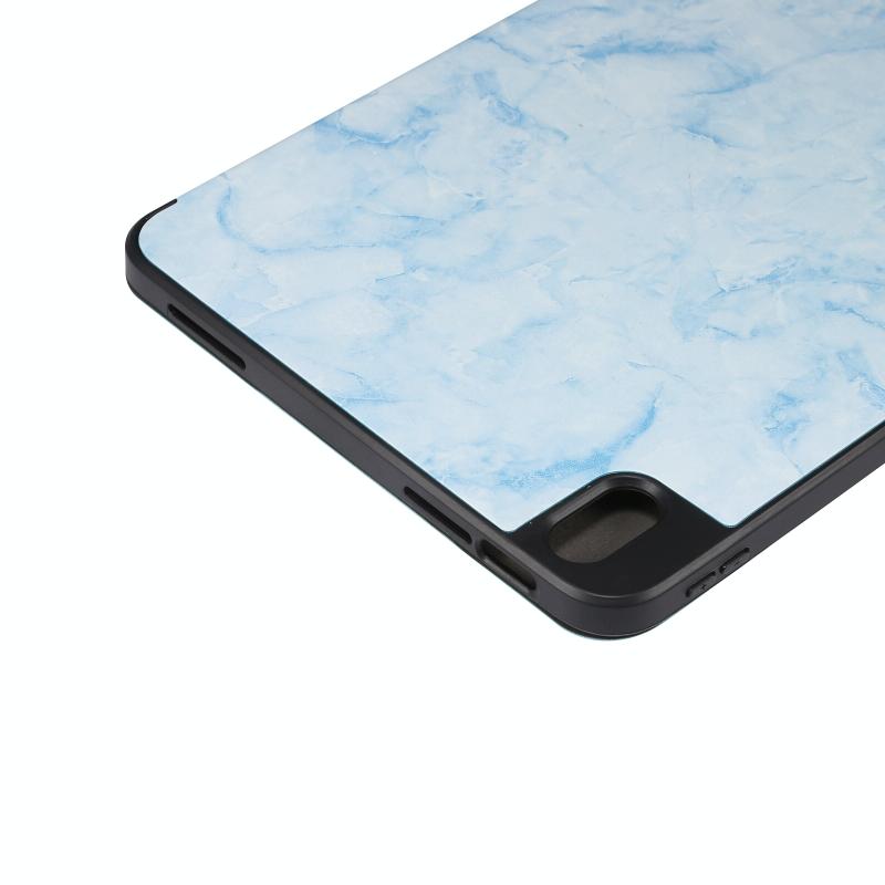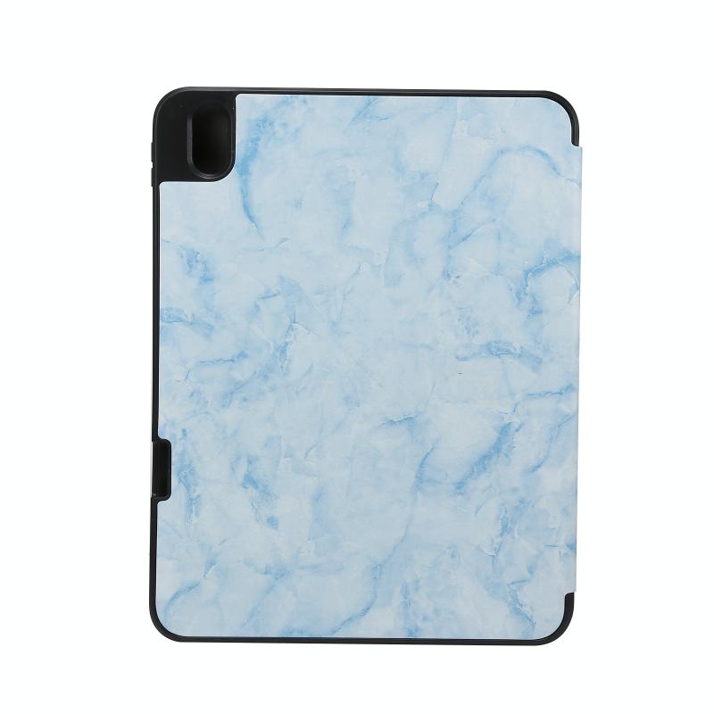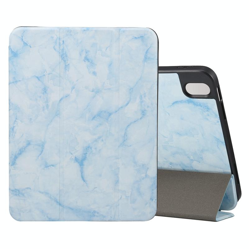 For iPad 2025 / 2022 Three-fold Marble Texture Protective Tablet Case with Pen Slot(Blue)