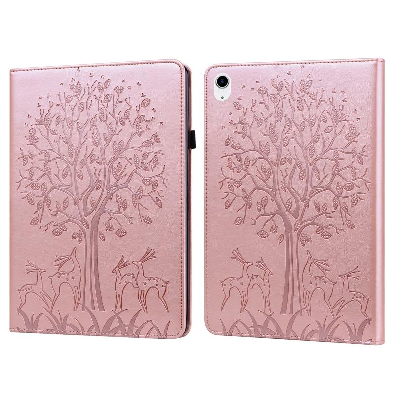For iPad 2025 / 2022 Tree & Deer Embossed Leather Tablet Case(Pink)