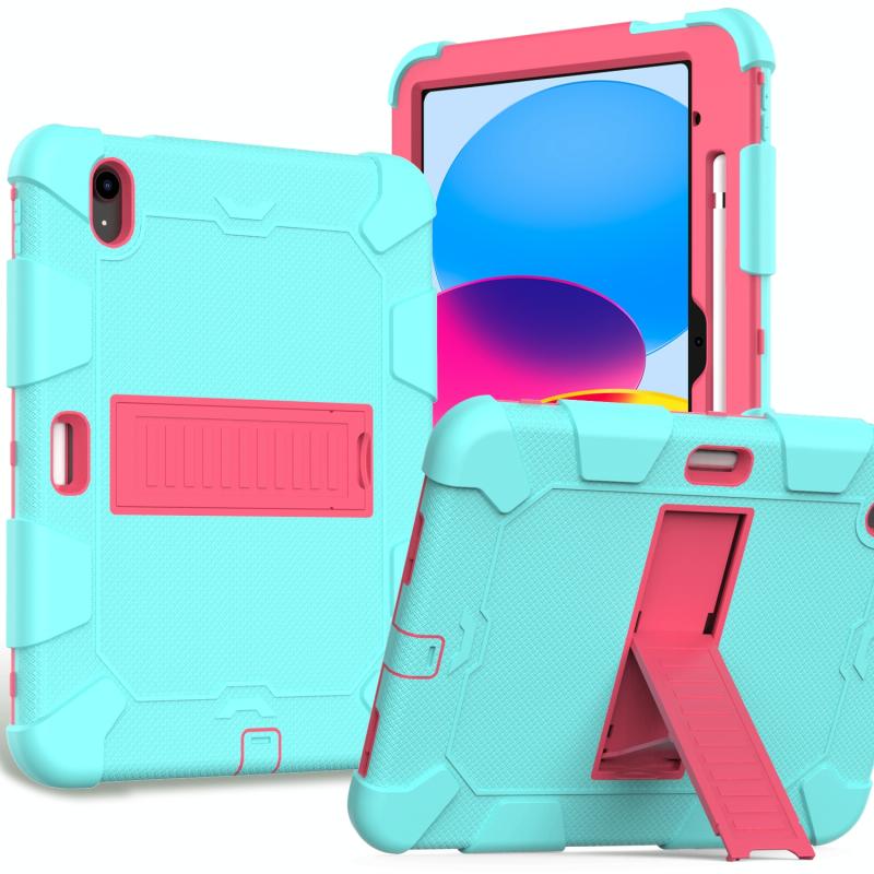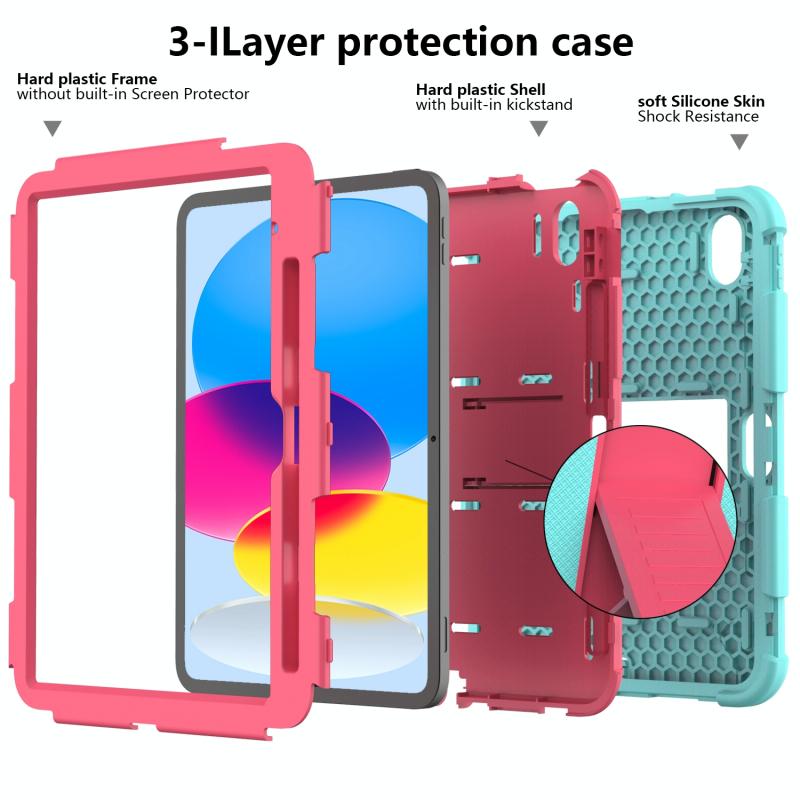 For iPad 2025 / 2022 Two-Color Robot Shockproof Silicone + PC Protective Tablet Case(Mint Green + Rose Red)