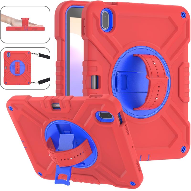 For iPad 2025 / 2022 X Rotation PC Hybrid Silicone Tablet Case with Strap(Red Blue)