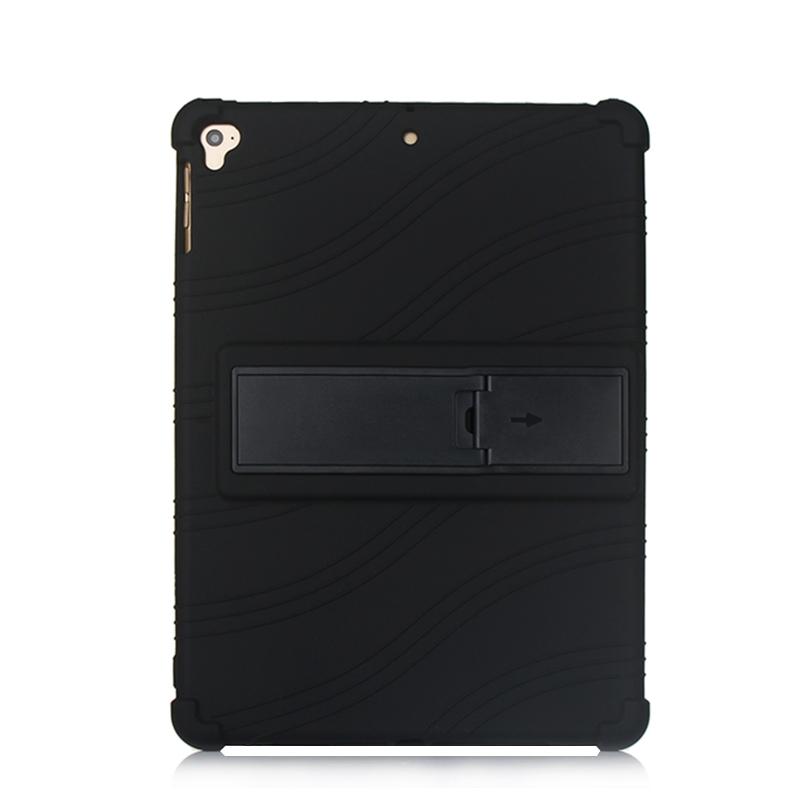 For iPad 6 (9.7 Universal) Tablet PC Silicone Protective Case with Invisible Bracket(Black)