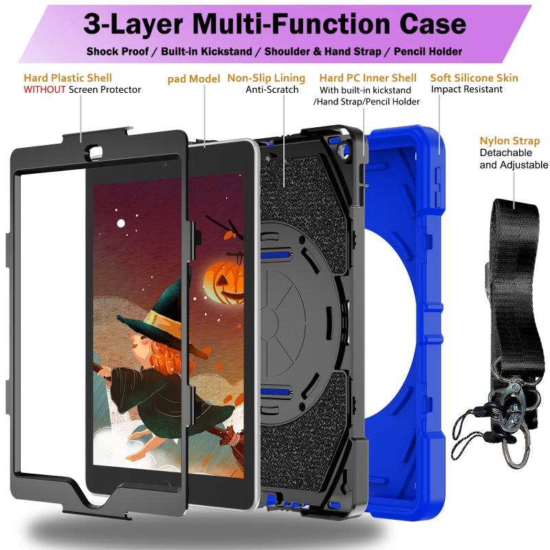 6. Detachable Shoulder Strap: The adjustable hand strap provides easy and comfortable grip, a must-have feature when you are presenting your tablet to others. The detachable and adjustable shoulder strap can help you carry your tablet more safely while hiking, traveling and other outdoor activities. This can also be used to secure your tablet to the car seat.