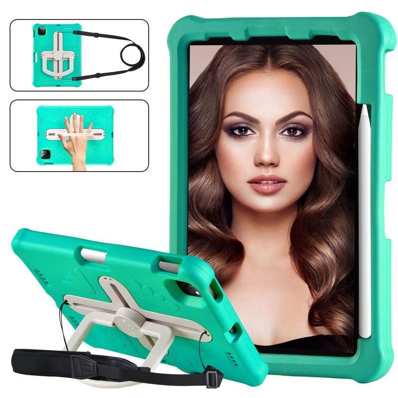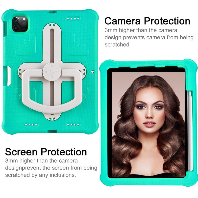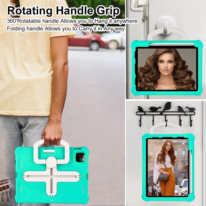 For iPad Air 11 2024 / 2025 Shield 360 Rotation Handle EVA Shockproof PC Tablet Case(Mint Green Beige)
