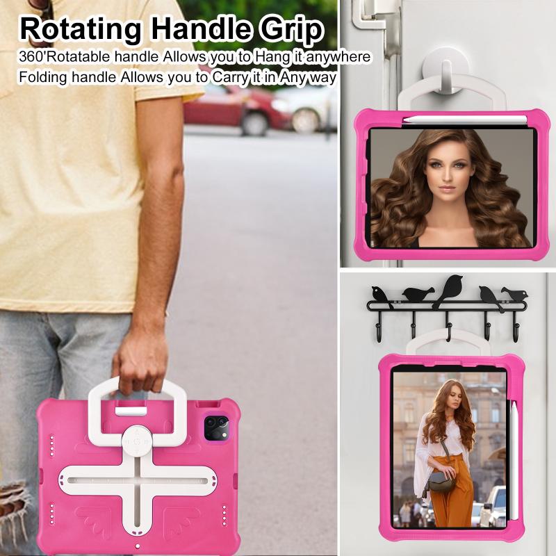 For iPad Air 11 2024 / 2025 Shield 360 Rotation Handle EVA Shockproof PC Tablet Case(Rose Red Beige)
