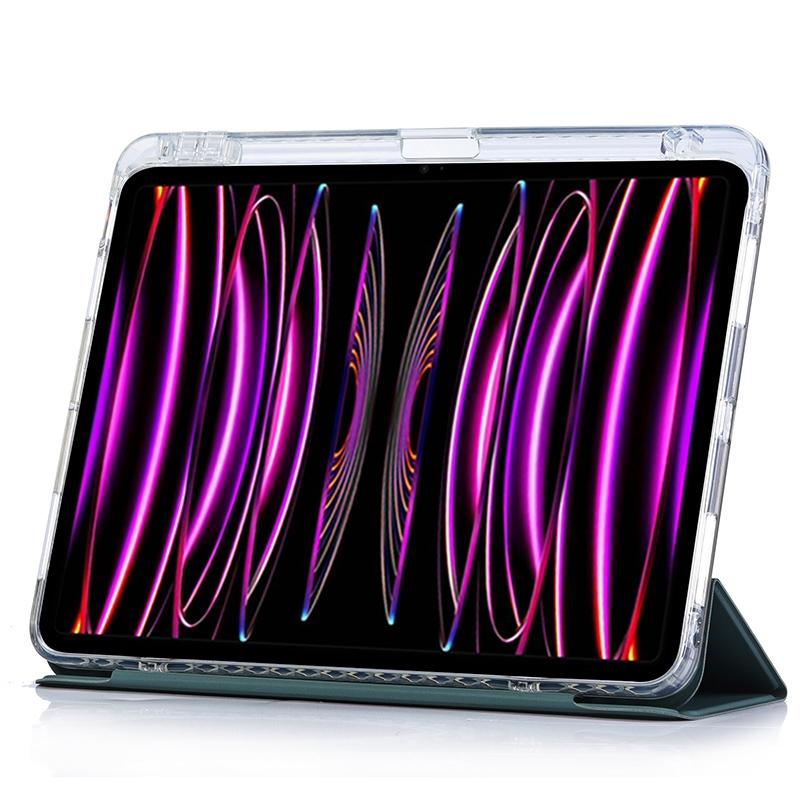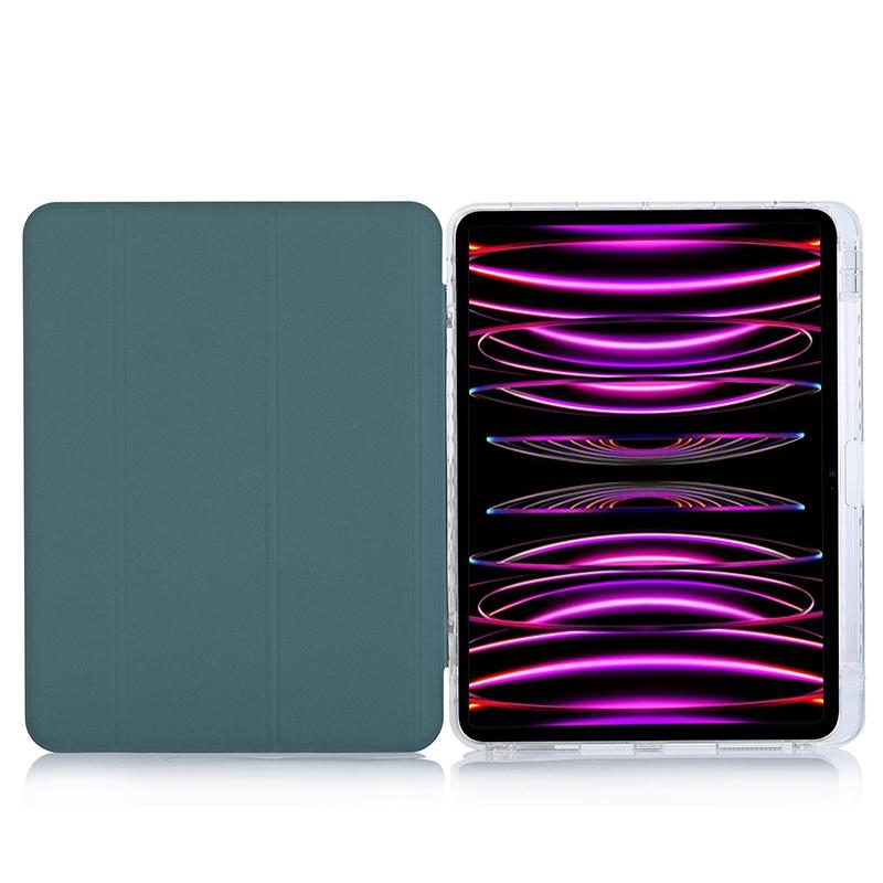 For iPad Air 11 2024 / iPad Pro 11 3-Fold Lock Buckle Leather Smart Tablet Case(Deep Green)