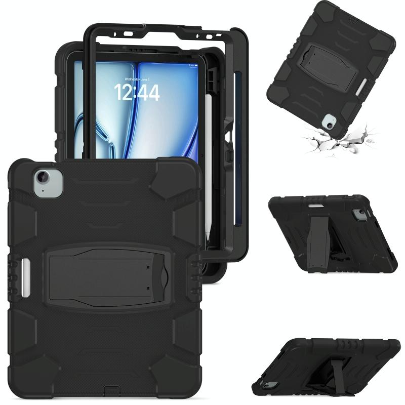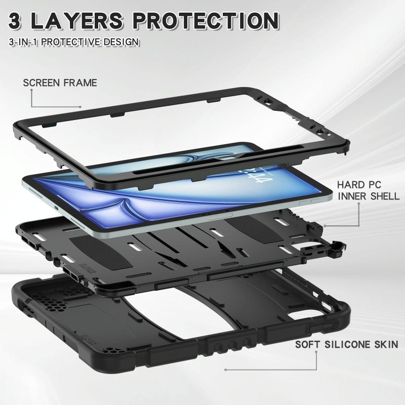 For iPad Air 11 2025 / 2024 3-Layer Silicone Hybrid PC Tablet Case(Black)