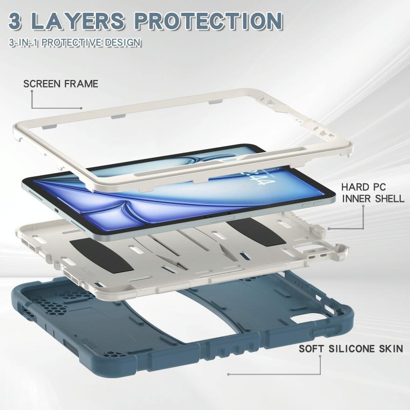 For iPad Air 11 2025 / 2024 3-Layer Silicone Hybrid PC Tablet Case(Cornflower Blue)