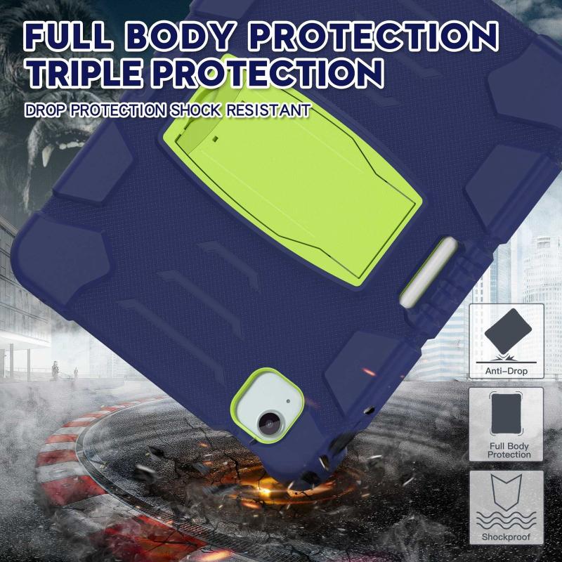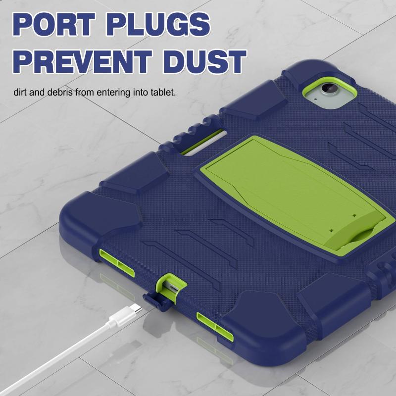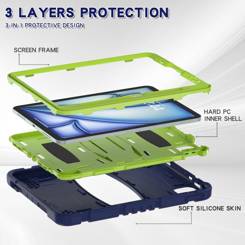 For iPad Air 11 2025 / 2024 3-Layer Silicone Hybrid PC Tablet Case(Navy Blue Lime)