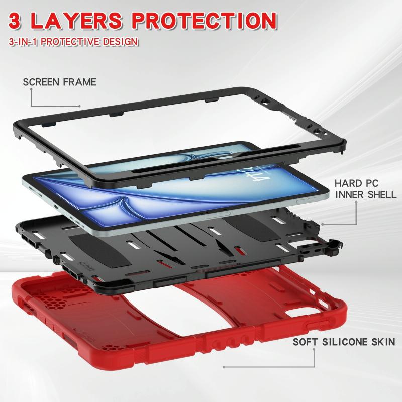 For iPad Air 11 2025 / 2024 3-Layer Silicone Hybrid PC Tablet Case(Red Black)