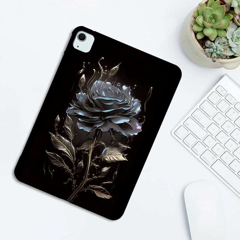 For iPad Air 11 2025 / 2024 Color Painting Pattern Smart Tablet TPU Case(Black Rose)