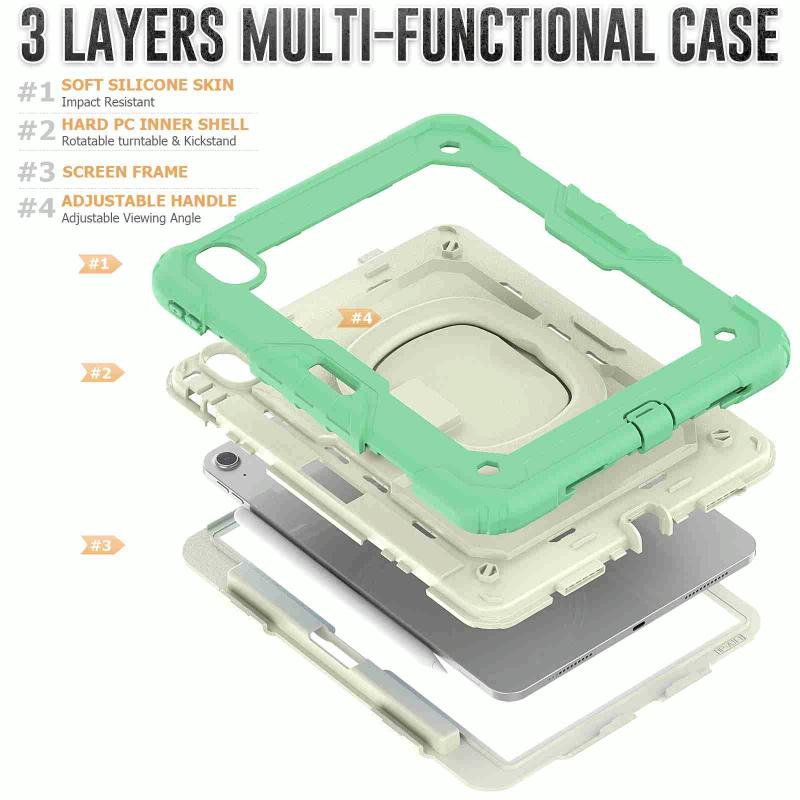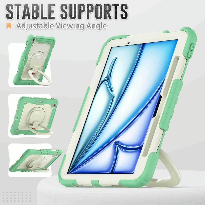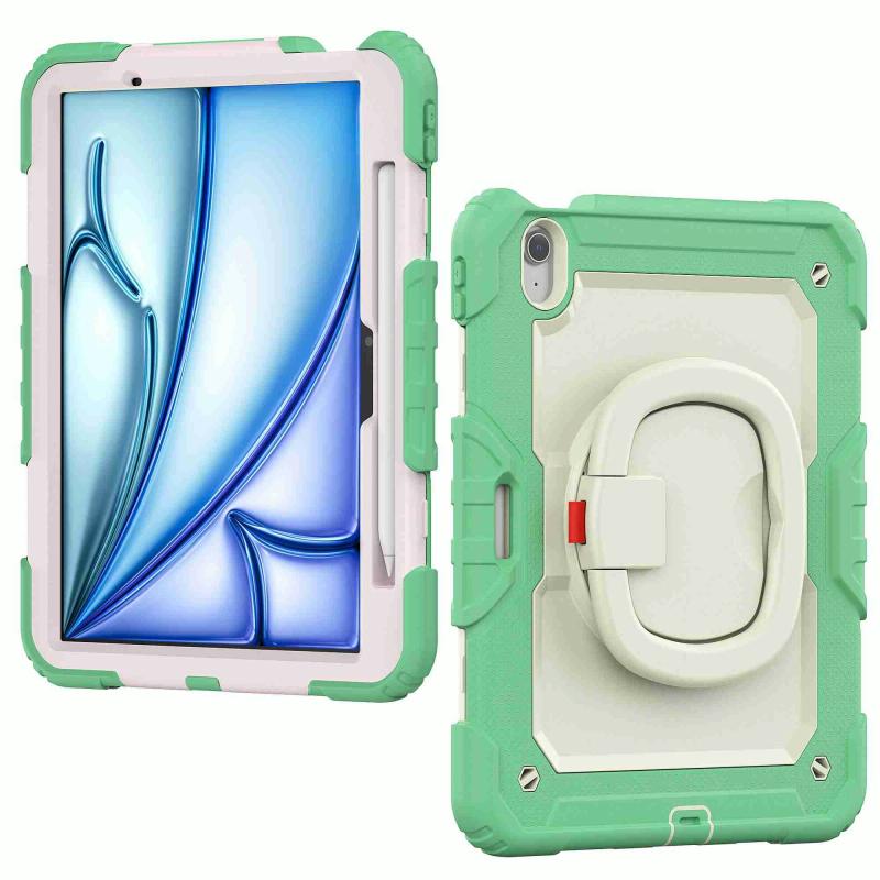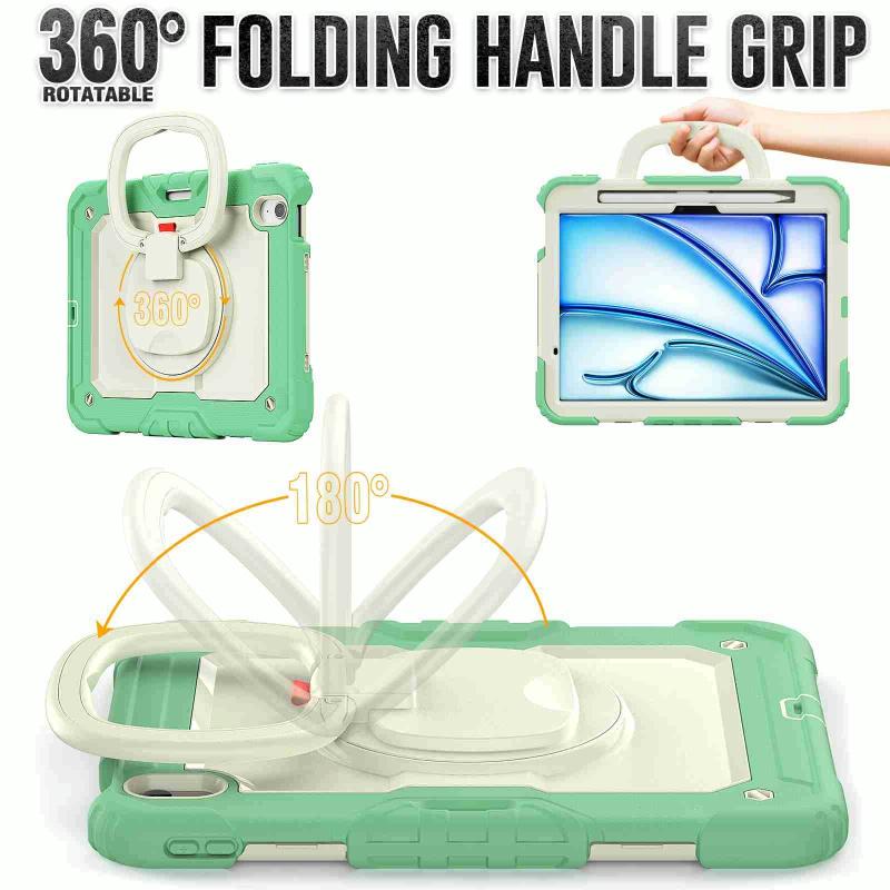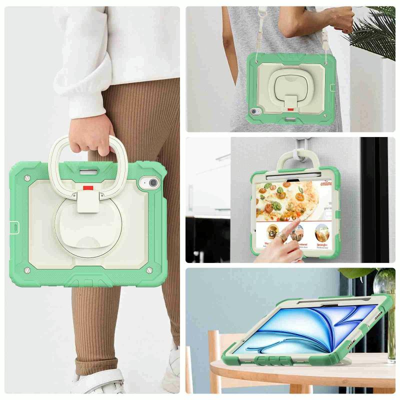For iPad Air 11 2025 / 2024 Handle Silicone Hydric PC Tablet Case with Shoulder Strap(Light Green)