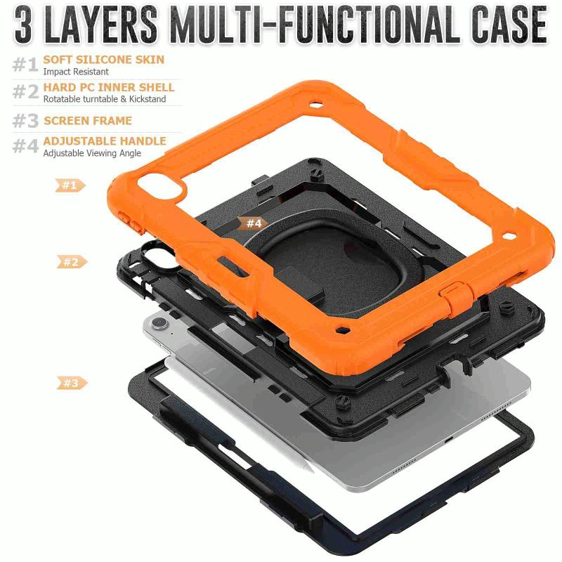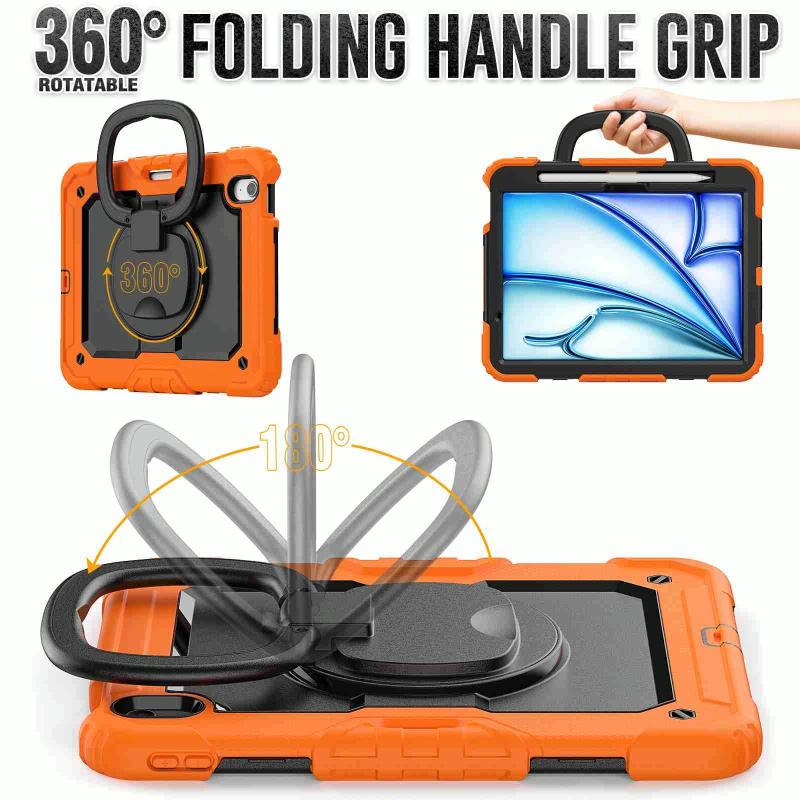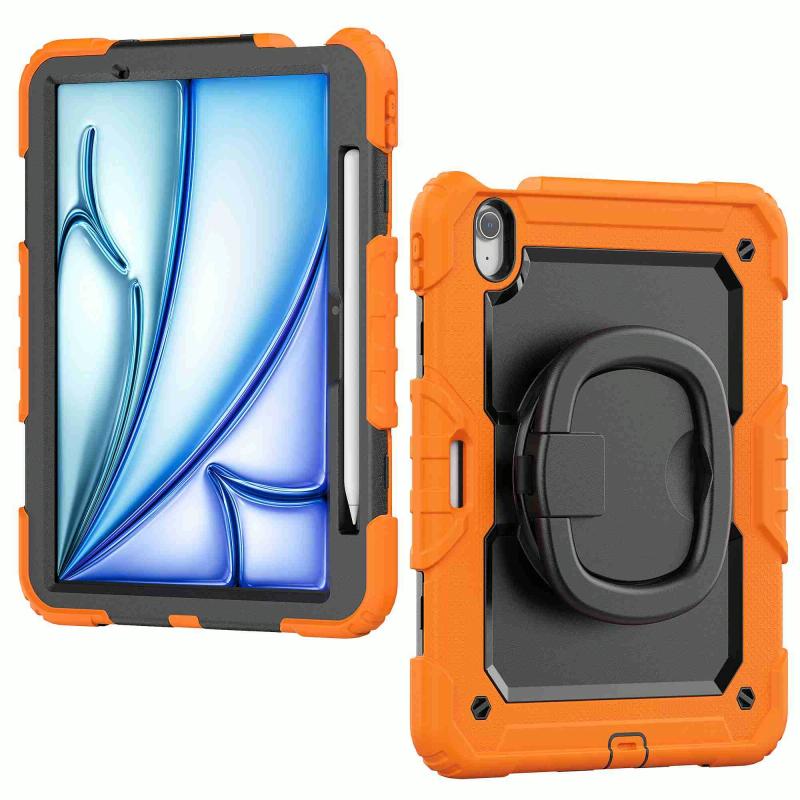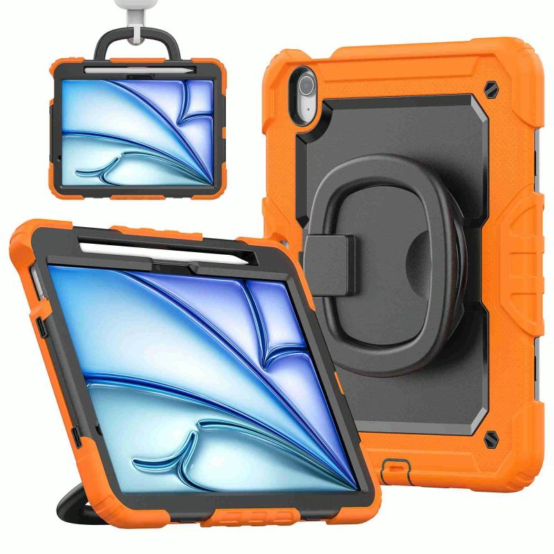 For iPad Air 11 2025 / 2024 Handle Silicone Hydric PC Tablet Case with Shoulder Strap(Orange)